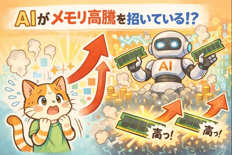 メモリに限らず、GPU、SSD、マザーボード、電源などなど、PC周辺機器全体が、別々の理由で同時に値上がりしています。「なんか全部高い」という感覚は、気のせいじゃありません。