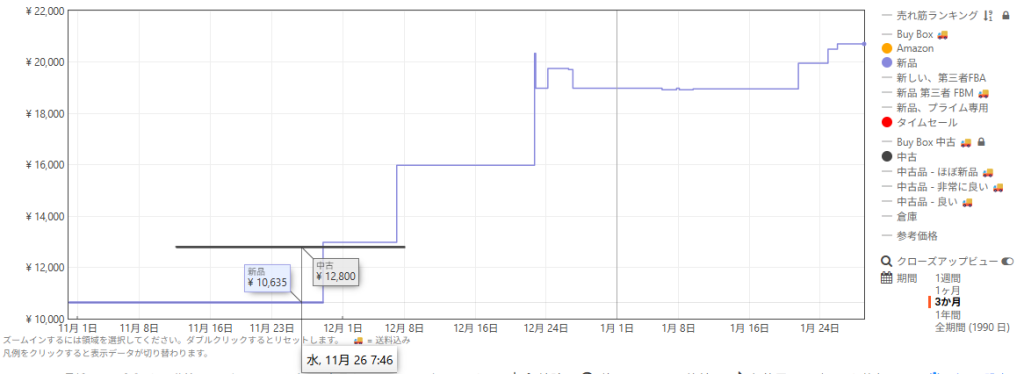 どうも2025年後半くらいからじわじわと値段が上がってきて、11月~12月ころには決定的に値段が跳ね上がったようですね。