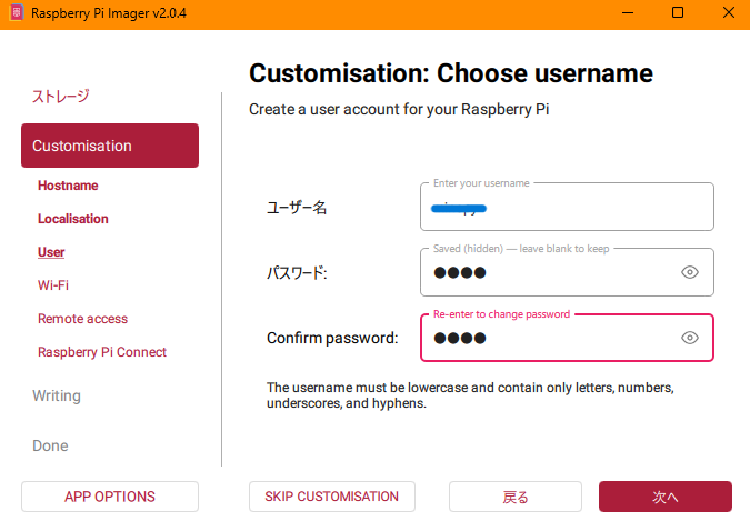 初期ユーザーのIDPASSを設定します。このIDPASSはSSHでアクセスするときに必要になるのでかならず覚えておきましょう。