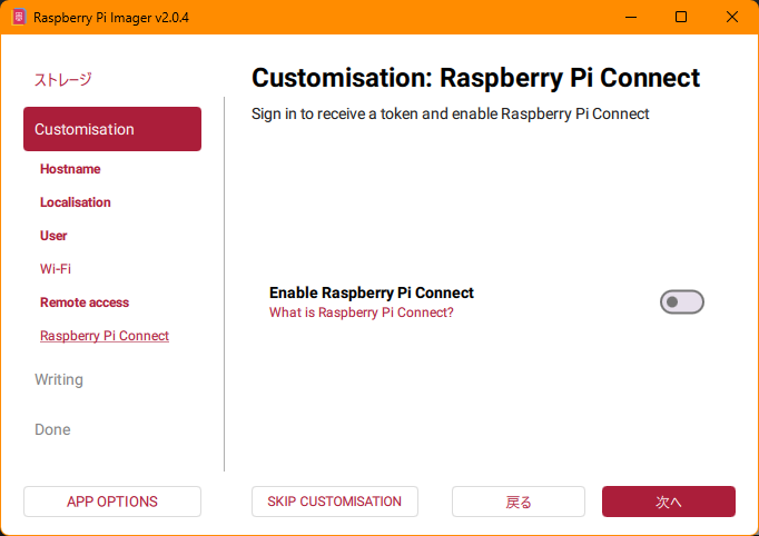 Raspberry Pi Connectは最近リリースされたリモートデスクトップの仕組みらしいです。別途モニターを用意しなくてもモニターがある状態で操作できるみたいなので便利だと思います。ただ自分はヘッドレスで使うのでこれは有効にしませんでした。