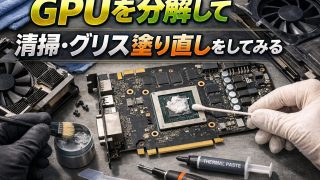 環境構築GPUを分解して清掃・グリス塗り直しをしてみる サブ機のCPUグリス塗り直しのついでに、サブ機に取り付けてあるMSI製のNVIDIA GeForce RTX3050の分解清掃とグリス塗り直しもしてみることにしました。負荷時に特に異常な高温になっているわけではないのですが、3年程度はノーメ... 2026.02.07環境構築